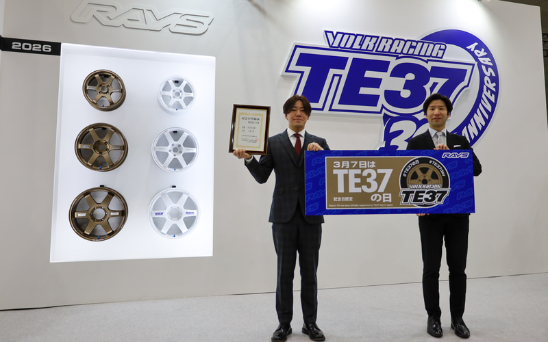自動車ホイールメーカーのレイズは「大阪オートメッセ2026」(インテックス大阪:2026年2月13日〜15日開催)に出展。同社の鍛造アルミホイール「TE37」の誕生30周年を記念したブースを展開している。
