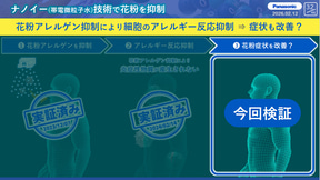 これまで、パナソニックではナノイー技術による国内主要17種の花粉に対する抑制や、細胞レベルのアレルギー反応抑制を実証してきたが、ナノイーを照射した自然由来の花粉がヒトの症状に与える影響は、明らかにされていなかった。