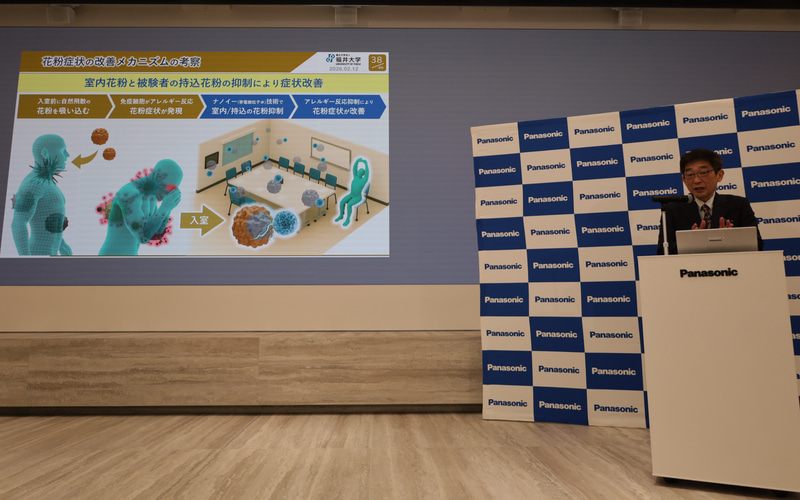 パナソニックは2月12日、同社の帯電微粒子水技術「ナノイー(nanoe)」が、「花粉症」の症状を有意に改善することを、ヒト臨床試験において世界で初めて実証したと発表した。