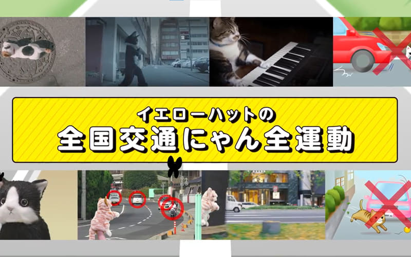 イエローハットは「猫の日は、猫を愛でるだけじゃなく、守る日にしよう。」というキャッチフレーズのもと、2019年から猫の日に「猫専用の交通安全動画」「猫専用フォトスポット」「交通にゃん全クイズ」「猫飛び出しサイン」「猫と徹底討論」など、事故にあいやすい猫への啓発活動を実施。2026年で活動8年目となる。