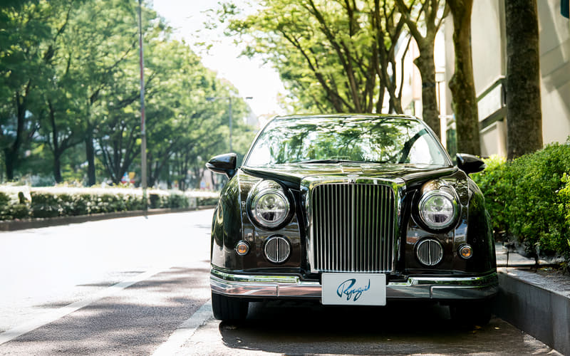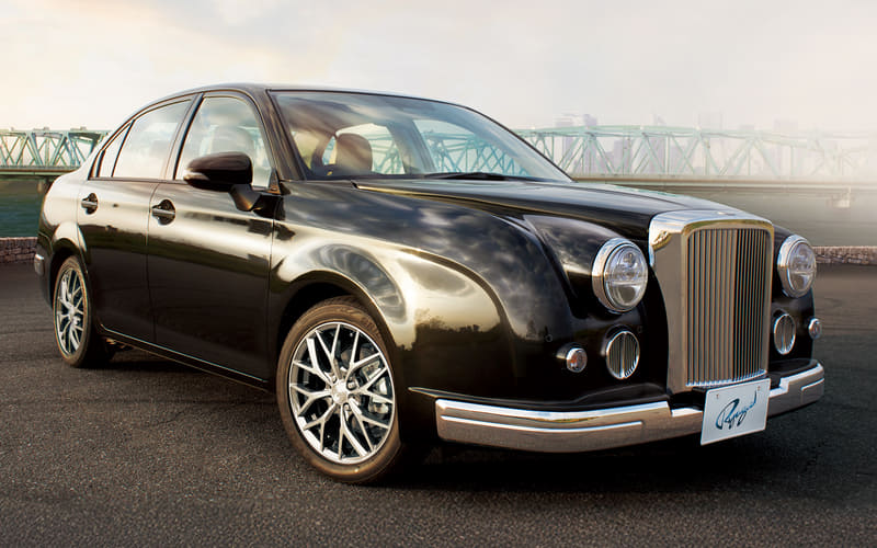 リューギは、ミディアムクラスセダンとして2014年に誕生。車名の“流儀”は、「ある物事に対するその人なりの、やり方、スタイル」という考え方が由来。光岡自動車のアイデンティティといえる縦型ラジエターグリルに丸型ヘッドランプを配置し、メッキ加工を施した前後のバンパー部に厚みを持たせることで、ミディアムクラスながら、堂々たる存在感を主張。