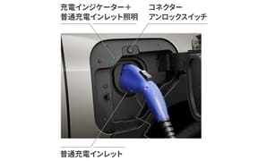 さらに「給電機能」により、アウトドアでの家電製品の使用など、大容量のバッテリに蓄えた電力を“走行”以外にも利用可能。ラゲージに設置されたコンセントによる車内での使用に加え、付属の「ヴィークルパワーコネクター」を普通充電インレットに挿し込むことで、合計1500Wまで対応。100Vの外部給電用コンセントとしても利用できる。