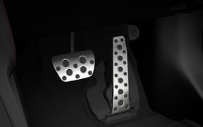 機能美を追求したデザインでまとめたフロントリップスポイラーとウイングタイプのリアスポイラーは、単に車体が浮き上がる力(リフト)を抑えるだけでなく、「前後の空力バランス」を徹底的に追求。コンピューター解析(CFD)と風洞試験を重ねてつくり込むことで、高速域のみならず、低中速域でもダウンフォースを発生させて操縦安定性が向上するという。