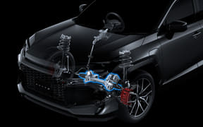 また、駆動用電池を補強部材として活用することで、ボディ剛性の向上と低重心化も両立。さらに、ハンドリング性能を向上させるため「GRパフォーマンスダンパー」や「GRブレース」を採用して操縦安定性も高めている。