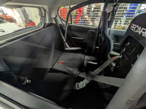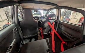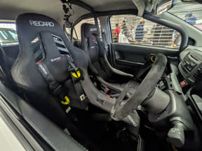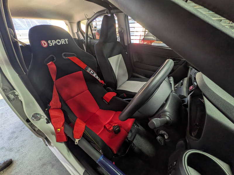 一方の東京オートサロン2026に「ミライース tuned by D-SPORT Racing 10時間耐久レース参戦車」として出展されていた915号車は、ベース車両をさらにモータースポーツを楽しめる仕様へと高めるためのチューニングパーツ開発車両として参戦。サスペンションは減衰力を若干高めた純正形状のショックアブソーバーとスプリングに交換され、タイヤは横浜ゴムの「アドバンネオバAD09」でサイズも165/55R15と大きくワイドになっている。パワーも全日本ラリー選手権に参戦している「ミライース モータースポーツ参戦車」と同様にブーストを高めていて、約80PSを発生する仕様。もちろん安心安全のために運転席と助手席はバケットシート&4点シートベルトを装備している。