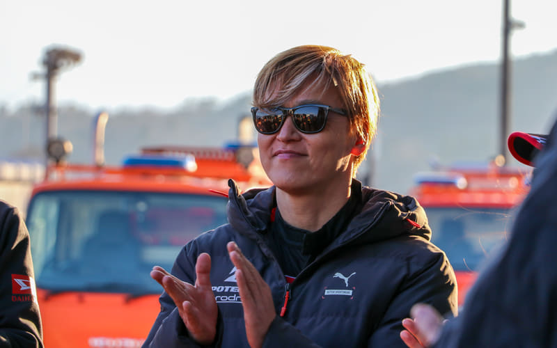 今回915号車は相原選手と井上社長のほかに、2025年はスーパー耐久シリーズやニュルブルクリンク24時間耐久レース、TGR GR86/BRZ Cup、ラリーチャレンジなど幅広いカテゴリーに参戦している佐々木雅弘選手、ダイハツ社員の小池氏、向井氏の5人が搭乗。916号車はSPKの岩淵氏、岩崎氏と、ダイハツ社員の松田氏、岩村氏と殿村監督の5人がステアリングを握った。