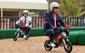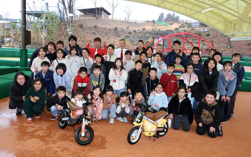 モビリティリゾートもてぎ(栃木県芳賀郡茂木町)は3月3日、2026年3月7日にオープンする新バイクアトラクション2種「オフロードツーリング リンドーバイク」「キッズバイクフィールド」の発表会を開催。同発表会に、栃木県出身のお笑いコンビ「U字工事」の福田薫さん、益子卓郎さんがゲストとして登場し、新アトラクションを体験した。