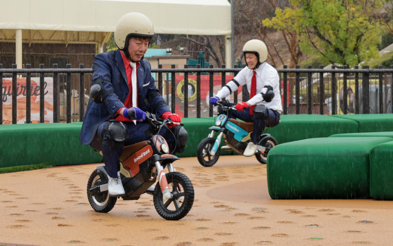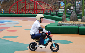 アトラクションで使用するバイクは、排ガスを出さず環境に優しいマシンであるEV(電動)バイクを採用。同時オープンする「キッズバイクフィールド」は補助輪なしの自転車に乗れる3歳から小学生までの子供を対象にしたアトラクションで、ここで上手に乗れた小学1年生の子供は「ライセンスカード」を獲得でき、「オフロードツーリング リンドーバイク」「モトレーサー」といった次のステップへ挑戦できる仕組みとなっている。
