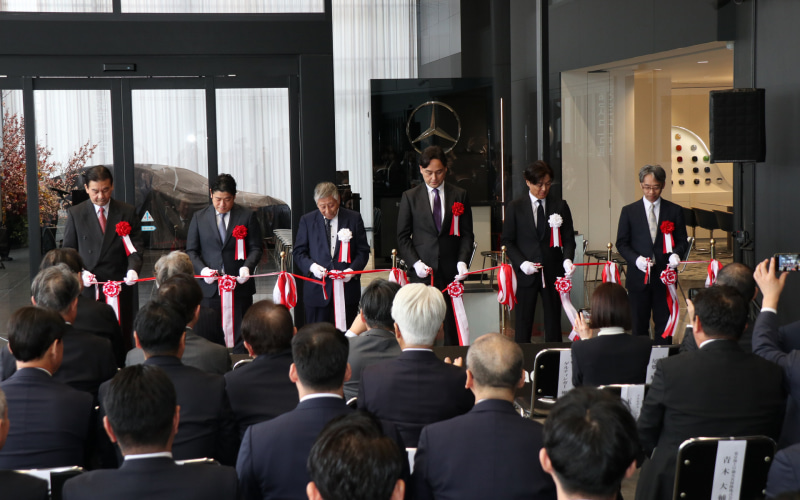初日となる3月3日にはオープニングセレモニーが実施され、店舗を運営するシュテルン神戸中央の代表取締役社長である西原朋史氏と会長の西原興一郎氏に加え、メルセデス・ベンツ日本のゲルティンガー剛社長なども会場を訪れてあいさつやテープカットを実施。また、新たに用意されたマイバッハラウンジの展示スペースで同日から販売受付を開始した特別仕様車「マイバッハS680 V12エディション」が車両展示された。