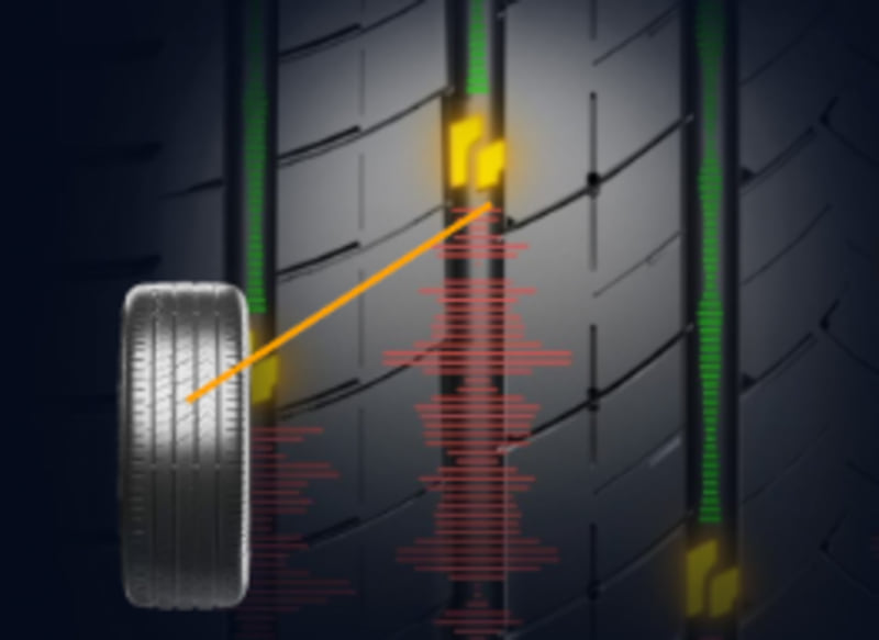 2つの先進技術の組み合わせにより、異なる周波数帯域の騒音を抑制し、より広帯域でのノイズ低減効果を実現。タイヤの静粛性を大幅に向上させた。