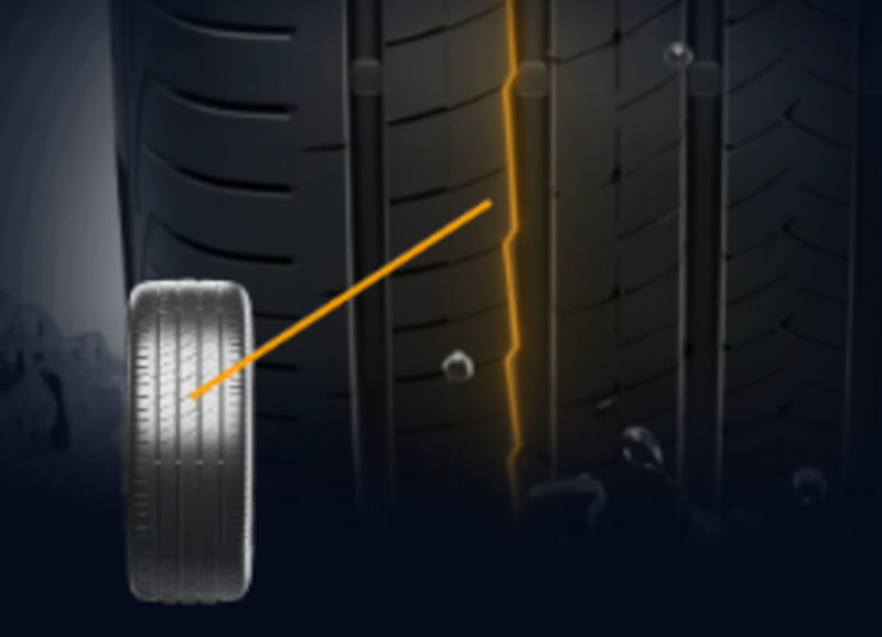 また、コンチネンタル独自の静音技術「ノイズブレーカー」により、トレッド縦溝内に配置された小さな突起構造により、縦溝から発生するノイズの音圧を制御。空気の流れを最適化することで、走行時に発生する特定周波数帯のノイズを効果的に抑制する。
