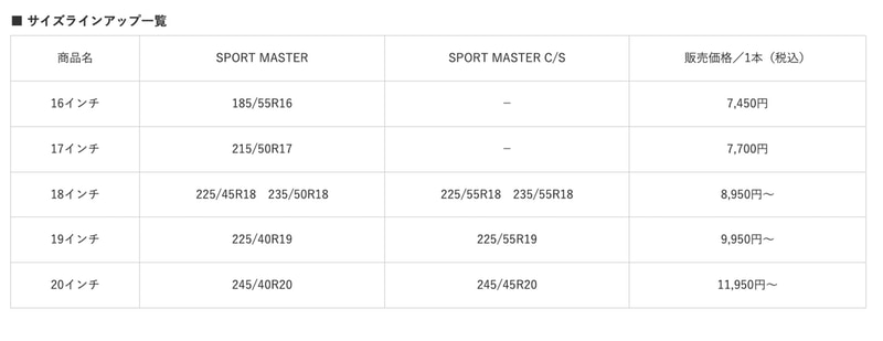 オートバックス、リンロンタイヤの専売モデル「スポーツマスター」「スポーツマスターC/S」発売