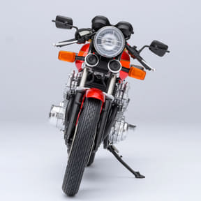 大阪モーターサイクルショー2026で販売する1/12スケールモデルの「CB750F」は、バリバリ伝説の主人公である巨摩 郡が、高校生ライダーとして公道を駆け抜けていた時代の愛車を、コミック仕様に基づき立体化した完成品モデル。バリバリ伝説の序盤を象徴するマシンであり、物語の原点ともいえる1台で、講談社公認のバリバリ伝説ライセンスも取得済み。