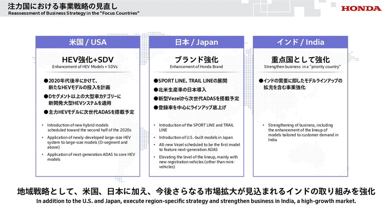 そのほかのアジア各国でも、次世代ハイブリッド車の発売やリソース配分の見直しによる競争力強化に取り組むとしている。
