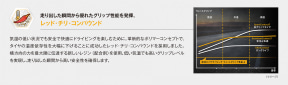 グリップ性能の強化により、リニューアル前の製品と比較してウェット制動性能が8.7%向上し、ウエット操縦安定性(ラップタイム)が10.1%向上したほか、ドライ路面での操縦安定性(ラップタイム)も3.2%向上している。転がり抵抗性能、車外通過騒音、パターンノイズなどについては同等としている。