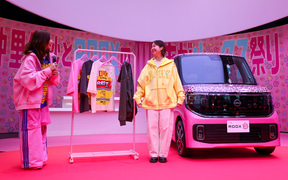 ヒョウ柄ピンクのルークスは、新型ルークスと仲里依紗さんがプロデュースするファッションブランド「RE.」とのコラボ車両で、3月18日〜22日にNISSAN CROSSING(東京都中央区銀座)でコラボレーションイベント「仲里依紗とROOXのあがルークス祭り」が開催される。