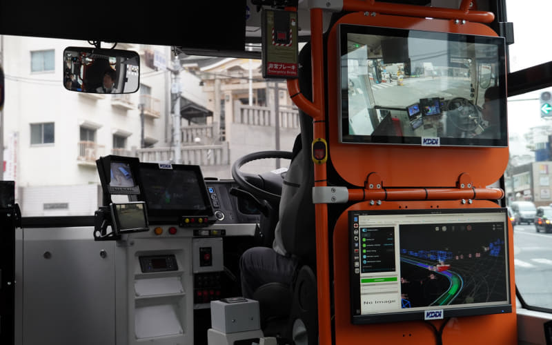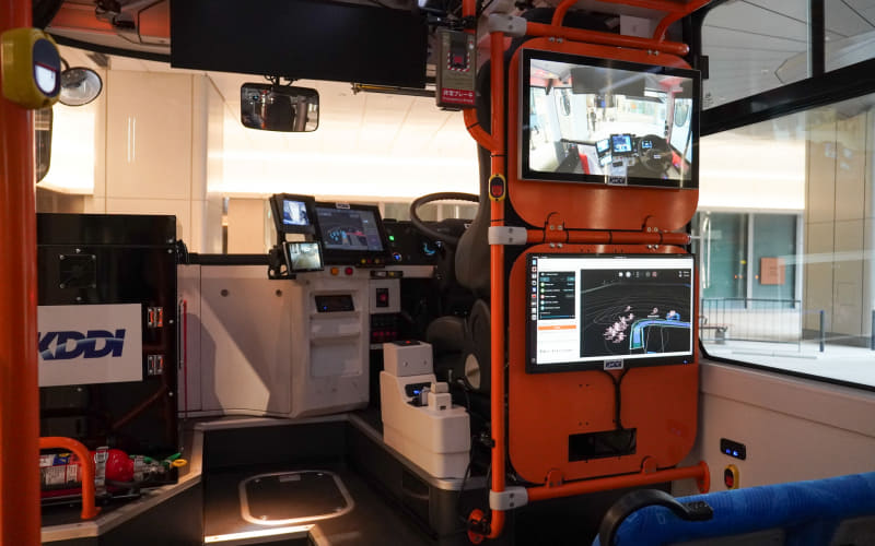 また、遠隔監視も行なわれており、KDDIのLTE回線を通じて走行状態や車内外の映像を受信している。