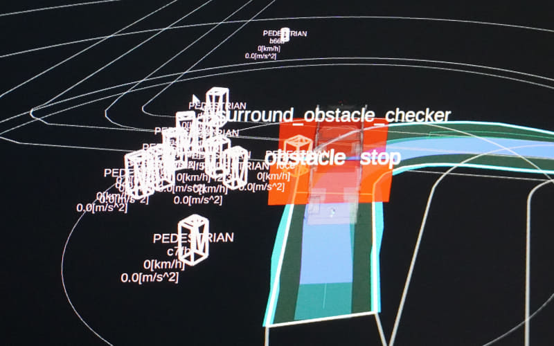 実際の走行でも、横断者が途切れて走り始めようとしたときに横断歩道に駆け込んでくる人がいたが、すぐにブレーキがかかり、周囲をすべてを認識して走行していることがうかがえた。