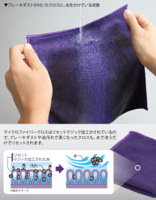 そこで新発売の「パープルマジック ホイール専用クロス」は、油汚れを繊維から離しやすくする特殊加工“リセットマジック”を施したマイクロファイバークロスを採用。クロスについた頑固な汚れも水洗いだけで落とせるようにしたほか、汚れ残りが少ないため繰り返し使用でき、常にクリーンな状態でホイール洗車が可能となり、ブレーキダストが多い輸入車の洗車にも便利なクロス。