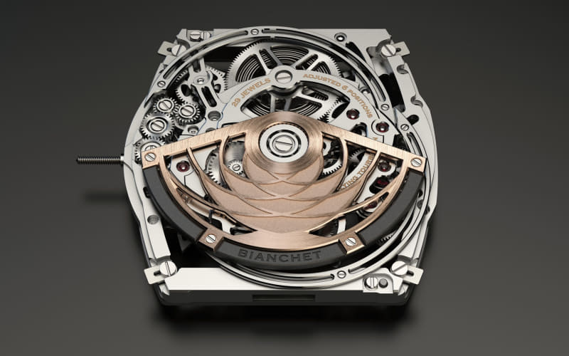 ムーブメント:Bianchet UT01(自動巻きフライング・トゥールビヨン、トゥールビヨン[60秒で1回転])
