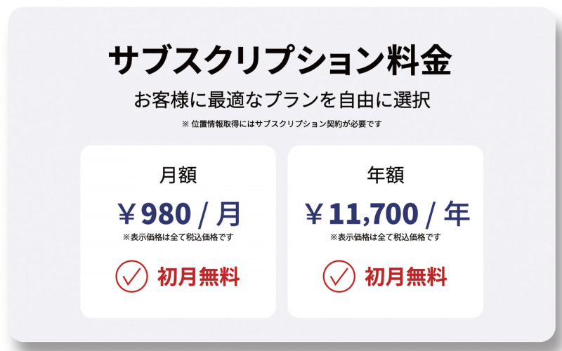 側位方法:GNSS(GPS/Galileo)、4G基地局(全携帯キャリア)、Wi-Fi