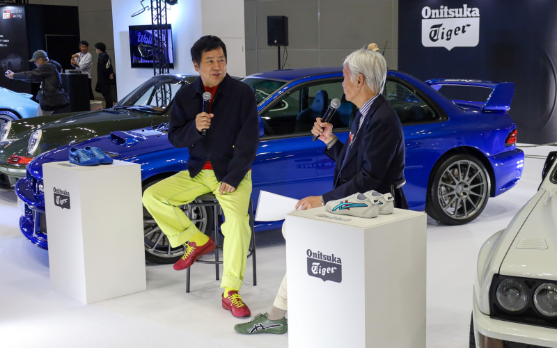 会場では、アシックス副社長執行役員でオニツカタイガーグローバルカンパニー長の庄田良二氏とAUTOMOBILE COUNCIL実行委員会 共同代表の加藤哲也氏によるトークセッションが展開された。トークセッションでは、東京五輪(1964年開催)とメキシコ五輪(1968年開催)のモデルをミックスして現代風にアレンジしたものが「メキシコ66」であることや、原型への敬意を払いながら、現代のテクノロジーで機能性を高める「レストモッド」の考え方が、オニツカタイガーの「本質を守りながら進化する」という理念と合致していることなどが語られた。