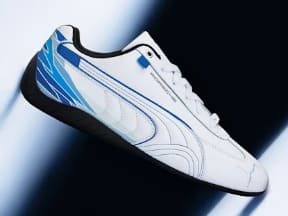 また、911個限定のプーマスピードキャットスニーカーは、軽量な構造にテクニカルなディテールと控えめなブルーのアクセントを組み合わせ、車両が持つ精密さとダイナミックな意図を反映。ジャケットはコントラストの効いたテキスタイルパネルが特徴で、強度、レイヤリングの技法、そして控えめな美しさを表現。ロングスリーブTシャツは、洗練されたカラーブロッキングによるクリーンで現代的なシルエットを備え、Tシャツはより本質的で日常的な表現へとテーマを落とし込み、リバリーデザインから抽出されたグラフィックを緻密に配置している。