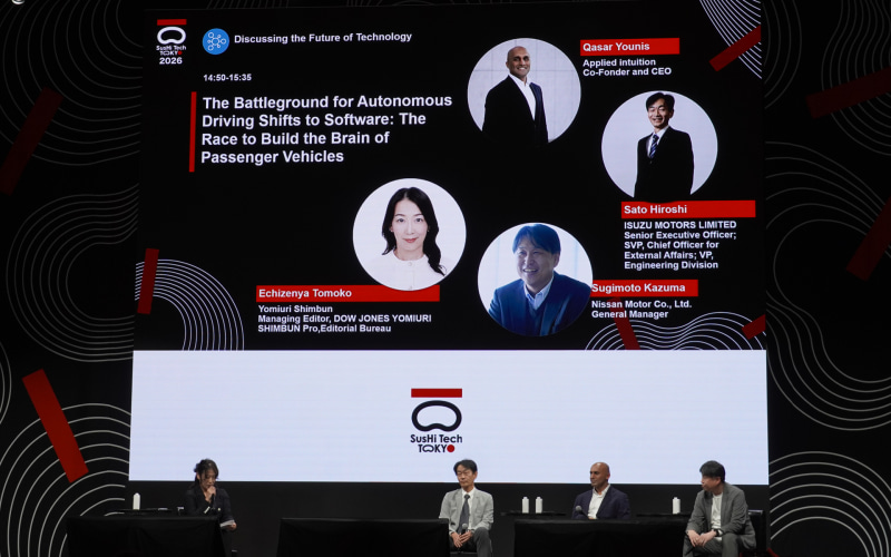 東京ビッグサイトでイノベーションの担い手が集まるイベント「SusHi Tech Tokyo 2026(スシテック東京)」が4月27日から開催中。初日のセッションでは「自動運転の主戦場は“ソフトウエア”へ ~乗用車を動かす頭脳の競争~」として日産自動車、いすゞ自動車、Applied Intuitionの担当者が登壇してディスカッションが行なわれた。