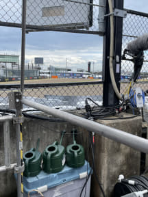 名古屋高速から伊勢湾岸道へ。東海JCT手前の電光掲示板は東名阪の「名古屋西JCT-弥富 工事渋滞4km 10分」の表示のみ。名古屋港の3つの橋「名港トリトン」は東から青、白、赤の順。青い橋の手前、名港潮見ICの手前の電光掲示板は「東名阪 四日市-鈴鹿 渋滞1km」の表示。鈴鹿ICの出口が渋滞しているようだ。みえ川越ICで降りて国道23号を走るルートは平日なので通勤時間帯の渋滞が厳しい。前日に続き、新名神の鈴鹿PAスマートICを目指すこととした。