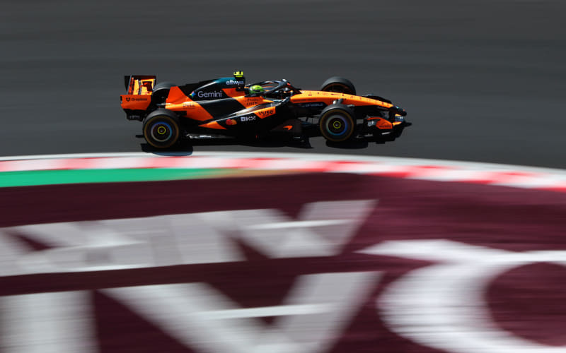 例年と違いコーナーのイン側にQatar Airwaysのペイントがされていた。撮影位置からは文字は逆さ、ロゴを全部フレームに入れると、マシンが豆粒になりそうなので、ロゴが少し入るように焦点距離105mm、広角になった分スピード感がなくなるので、シャッター速度は1/30秒に変更した。