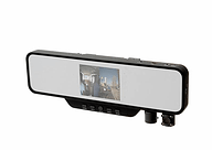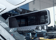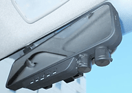 ミラーの右下に前後に180度ずつ回転するカメラを2台備え、前後同時撮影を可能としたドライブレコーダー。撮影はエンジン始動と同時に開始し、エンジンを切ると自動的に撮影を終了してデータを保存する。