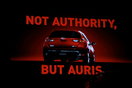 | 新型オーリスのCMコンセプトは「時代の潮流と一線を画すスポーツハッチバックとしてのオーリス」。コピーは「NOT AUTHORITY,BUT AURIS.~常識に尻を向けろ~」としていることから、メインカットはあえてリアまわりからとなった |