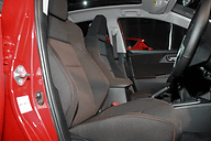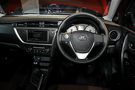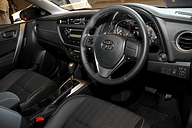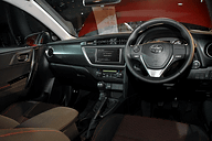 | 新型オーリス(RS)のインテリア。RSのインテリアカラーはブラックのみで、インストルメントパネルにカーボン調の加飾が与えられる。シートのメイン素材はファブリック | |