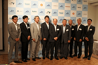 | ジャパンチャージネットワーク 代表取締役社長 武田二郎氏 | ジャパンチャージネットワークに出資する住友商事、日産自動車、日本電気、昭和シェル石油 | NEXCO東日本の常務執行役員 窪寺克次氏 |