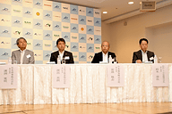 | 成田国際空港 取締役 村田保史氏 | ファミリーマート常務執行役員 本多利範氏 | フォミリ-レストランのびっくりドンキーを運営するアレフのエコチームリーダー 佐々木隆浩氏 |