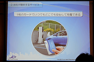これは、従来からある急速充電システムにカード認証システムをもたせることで、いままで営業時間外は充電できなかったディーラーなどでも、24時間無人で充電サービスを提供できるようにするというもの。さらにこれまで日産ディーラーやEVSSなどがそれぞれで認証カードを発行していたものが、相互乗り入れを可能とすることで、ユーザーは1枚のカードでディーラーやガソリンスタンド、コンビニと様々なシーンで給電サービスを受けることができるようになる。