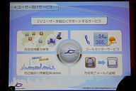 また、同社の充電器はすべてネットワークで管理されているため、満空情報やあるいは故障中といったデータをリアルタイムで知ることができる。データはPCやスマートフォン、リーフのナビが搭載するカーウイングスで確認できるほか、24時間365日対応のコールセンターで、最寄りの稼働中給電施設を調べることができる。さらに充電が完了した際には登録したメールアドレスに完了通知メールを送ることも可能だ。