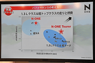 | N-ONEのポジショニング | Tourerでは1.5リッターくらすの動力性能を持つという |
