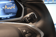 ステアリングホイールの奥のメーターパネルも液晶パネルになっていて、エネルギー効率やナビゲーション、インフォテインメント、車両情報などを表示することができる。