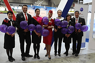 旅博では各社がブースを構えるものの、パネル展示やパンフレット配布を行うブースが多い。実際に会場にいって、その国や地域から来日した観光担当者と話しつつ旅の情報を得られるのがメリットであるが、誌面で伝わりづらい部分もあるので、ここでは会場に展示されていた航空会社のビジネスクラスシートを紹介する。