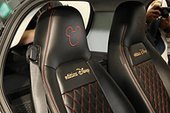 このほか、インテリアでは通常はファブリック仕様のシートを本革に変更し、表面に赤の糸を使ってダイヤモンドステッチを施すことで高級感を演出。ヘッドレストにはミッキーマウスのシルエットが入り、インテリアの要所を赤く塗装して、運転中でもミッキーマウスと一緒にいるような雰囲気が感じられるようになっている。