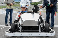 開発現場が公開された当日の車両は外装がなく、モーターを含む電装系の部品がほぼむき出しの状態になったプロトタイプ。これに佐藤選手が乗り込み、モーター出力の制御マップを切り替えながら試走を繰り返した。最初に開発陣が4つ用意した制御マップのうち、南コースを数回走行して2つに絞り込み、次にサーキットカートの本来のコースとなる東コースで3周して感触を確かめていた。