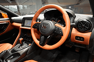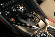 その2017年モデルだが、エクステリアでは冷却性能向上と空気抵抗の低減を目的にVモーションの加飾を与えたフロントグリル(マットクローム仕上げ)の開口部を拡大するとともに、フロントスポイラーの形状を変更。超高速域での変形を抑制するためエンジンフードには補強が施され、さらにY字スポークの新デザインとなる20インチ鍛造アルミホイールを採用した。リアディフューザーまわりでもシルバーフィニッシュが与えられた新しいものに変更している。ボディサイズは2015年モデルから40mm長くなり、4710×1895×1370mm(全長×全幅×全高)、ホイールベースは2780mm。