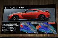 次に登壇した中村CCOは、「GT-Rは1969年に最初のモデルを発売したが、常にヘリテージを継承しつつ、時代をリードする先進技術で進化させてきた。R35はフラグシップとして究極のドライビングプレジャーを追求し、グローバルで好評をいただいている。今回はパフォーマンスと洗練をさらに進化させ、エンジン出力アップ、静粛性と車体剛性の向上などに加え、デザインの大幅改良を行なった」と述べるとともに、フロントではVモーションデザインを加えた、エンジンパワーアップに対応するための冷却効率の高いグリルを採用したと紹介。またバンパーからサイド、リアにかけてデザインを変更したことについては、「単にデザインを変更しただけでなく空力性能も向上させ、高速域でより高い安定性を実現している」と説明した。
