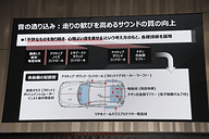 キャビンまわりではフロントウィンドウフレームを強化するなど車体剛性の向上を図り、フロントとリアの変形量の差を抑えることでボディの一体感を高めた。その結果としてサスペンションが効率よく動き、接地荷重が上がり、超高速域での直進性の向上や安定性に寄与したとしており、スラロームスピードや高速安定性が向上したという。さらに「不快なものを取り除き、心地よい音を乗せる」という考えのもと、フロントウィンドウに遮音ガラスを採用したほか、バルクヘッドまわりやリアホイールハウスに吸音材、トランクまわりに吸音効果のある制振材を追加。さらにエンジンのこもり音を低減することを目的とした「アクティブノイズコントロール」機能、電子制御バルブ付きのチタン合金製マフラーなどを採用していることが紹介された。
