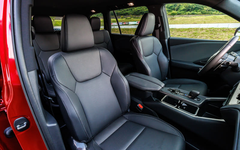 2.4リッターターボの実力はこの大きなボディを引っ張るにも十分で、上り勾配も軽快に走る。ただし「低速トルクの厚みはそれほどないな」、と感じたところでグイッと加速した。アクセルのゲインが高く飛び出すようだ。どうもピックアップが鋭すぎる。試乗中にドライブモードの切り替えスイッチを捜したがアナログスイッチはなく、モヤモヤした気持ちで3周の試乗を終えた。こちらはあとで再確認。