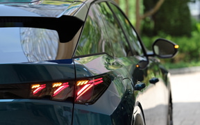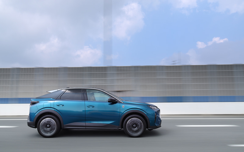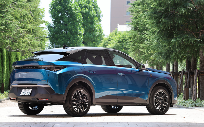 ボディスタイルは電動化の影響だろう、ファストバックスタイルが強くなった。また、プジョーとしては初めてサイドウィンドウモールを隠すデザインを採用し、エッジの効いたキャラクターラインとパネル処理で、力強い都会的な印象を与えるデザインを完成させた。