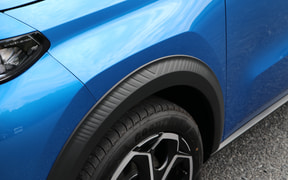 エクステリアには、カラークリップと呼ばれるパーツが付いており、これはボディカラーに合わせてデザイナーがコーディネートしたものだそう。フロントまわりと、Cピラー付近に目を引くラインが入っていて、これがちょっとしたアクセントになっている。