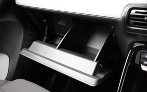 さらにドアの内側には赤色の小さなタグが付いていて、まるで好きな服を着こなしている気分になる。また、グローブボックスを開けると、シトロエンを象徴するモデルが立体的に浮かび出るような加工がしてあって、こういったさまざまなギミックを発見するのもC3の楽しみだと感じた。