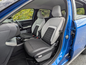 筆者自身がフランス車を好きな理由は、ウキウキさせてくれるデザインやしなやかな乗り味はもちろんだが、シートがいいことも大きな要素として挙げられる。昔のシトロエンは、それこそマシュマロのようにフカフカのシートだったが、近年のシートは低反発のようにコシがありながら、お尻が痛くならない程度の柔らかさで、長時間乗っていても腰に負担が少ないところがとても気に入っている。新型のC3もファブリックと合成皮革の組み合わせのツートーンカラーになっていて、心地よい座り心地に加えてデザインも可愛らしかった。